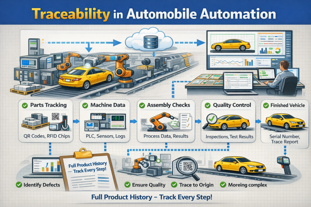 Traceability in automobile automation means the ability to track and record every step of a productβs manufacturing process, including parts used, machine data, and quality checks.