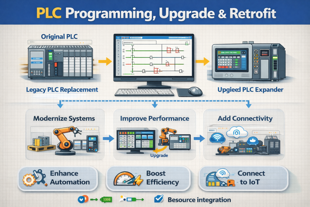 We provide professional Programmable Logic Controller programming services for industrial machines and automated systems. Our solutions include PLC logic development, machine automation, system integration, troubleshooting, and upgrades to improve productivity, reliability, and operational efficiency in modern manufacturing environments. ⚙️🏭